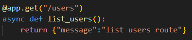 @app.get("/users")를 통해 users 경로를 만들어본다.